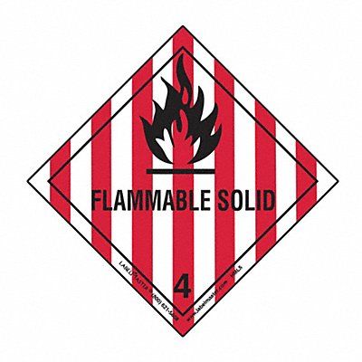 DOT Container Label Language English Container Label/Placard Type Hazardous Class Hazard Class Class 4 (Flammable Solids) DOT/UN Product Form Label Message Flammable Solid Label Width 3 15/16 in Label Height 3 15/16 in Material Paper