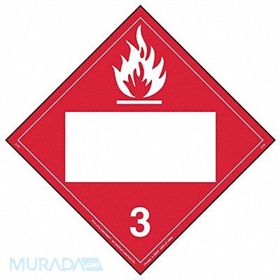 DOT Container Placard Language English Container Label/Placard Type Hazardous Class Hazard Class Class 3 (Flammable Liquids) DOT/UN Product Form Placard Message Flammable Liquid Label Width 10 3/4 in Label Height 10 3/4 in Material Vinyl