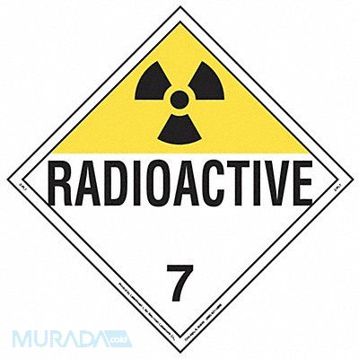 DOT Container Placard Language English Container Label/Placard Type Hazardous Class Hazard Class Class 7 (Radioactive) DOT/UN Product Form Placard Message Radioactive Label Width 10 3/4 in Label Height 10 3/4 in Material Rigid Vinyl Package Quantity 10