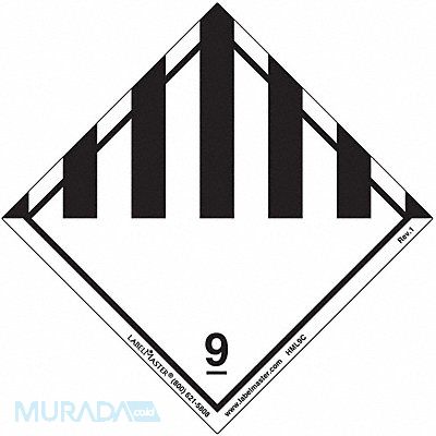 Label Class 9 Miscellaneous Dangerous Goods Paper Language English Container Label/Placard Type Hazardous Class Hazard Class Class 9 (Miscellaneous Dangerous Goods) DOT/UN Product Form Label Message Dangerous Label Width 4 in Label Height 3 15/16 in Material Semi-Gloss Paper Package Quantity 500