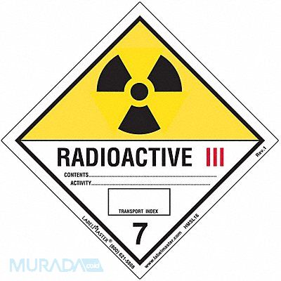 Label Class 7 Radioactive III PVC-Free Language English Container Label/Placard Type Hazardous Class Hazard Class Class 7 (Radioactive) DOT/UN Product Form Label Message Radioactive III Label Width 4 in Label Height 3 15/16 in Material PVC Package Quantity 500