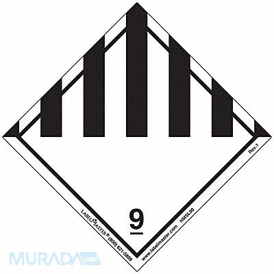 Label Class 9 Miscellaneous Dangerous Goods Paper Language English Container Label/Placard Type Hazardous Class Hazard Class Class 9 (Miscellaneous Dangerous Goods) DOT/UN Product Form Label Message Dangerous Label Width 4 in Label Height 3 15/16 in Material PVC Package Quantity 500
