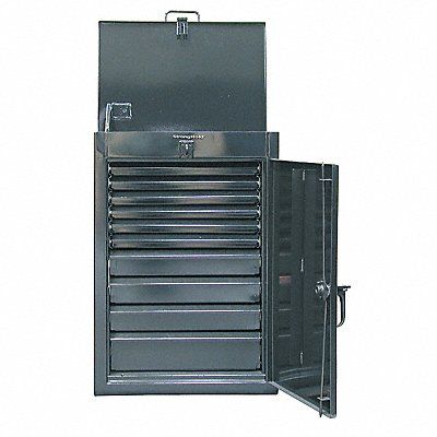 Storage Cabinet Door Handle Type Swing Frame Assembled Assembled Number of Doors 1 Base Type Frame Drawer HxWxD (1) 6 in x 24 in x 20 in (3) 4 in x 24 in x 20 in (6) 2 in x 24 in x 20 in Lock Type Padlock Hasp Number of Drawers 10 Overall Depth 20 in Overall Height 40 in Overall Width 28 in Cabinet Color Dark Gray Drawer Depth 20 in Drawer Handle Type Swing Drawer Height 2 in 4 in 6 in Drawer Width 24 in Method of Construction Welded Cabinet Finish Baked Enamel