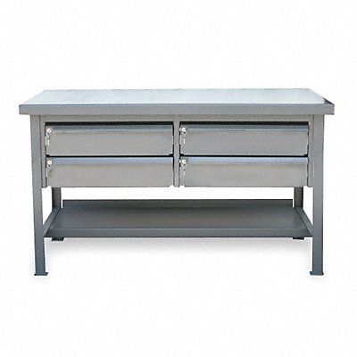 Workbench Height Adjustability Fixed Height Top Material Steel Assembly Fully Assembled Color Gray Frame Material Steel Leg Type Straight Leg Maximum Adjustable Height Not Applicable Minimum Adjustable Height Not Applicable Non-Metal Top Thickness Not Applicable Number of Drawers 4 Included Components Drawers Lower Shelf Number of Shelves 1 Overall Depth 36 in Overall Fixed Height 34 in Overall Load Capacity 8 250 lb Overall Width 60 in Portability Stationary