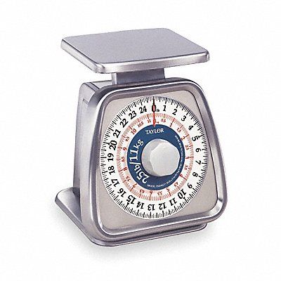 Dial Scale Scale Display Analog Dial Weight Capacity 32 oz Weighing Surface Depth 6 in Weighing Surface Width 5 1/4 in Weighing Units g oz Scale Graduations 0.13 lb Weighing Surface Height 8 1/2 in Weighing Surface Material Stainless Steel Accuracy 2 oz (0.5 Percent) Body Material Stainless Steel Color Silver Dial Diameter 5 1/2 in Overall Depth 8 7/8 in Overall Height 7 1/4 in Overall Width 7 1/2 in Scale Application Food Portioning