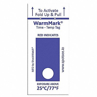 Temperature Indicator Label Environmental Indicator Type Heat Resettable Not Resettable Label Width 3/4 in Label Height 1 13/16 in Temperature Range -13 Degrees to 77 Degrees F Adhesive Material Acrylic Min Temperature Measured 77 Degrees F Max Temperature Measured 77 Degrees F Shelf Life 2 yr Status When Shipped Armable Language English Package Quantity 100