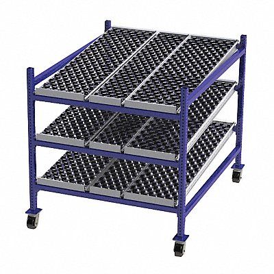 Gravity Flow Rack Caster Wheel/Tread Material Phenolic Caster Wheel/Configuration (4) Swivel Casters with Brakes Caster Wheel Diameter 4 in Decking Style Wheelbed Decking Material Rubber Decking Finish Powder Coated Frame Material Steel Frame Finish Powder Coated Shelving Configuration Mobile Shelving Angle Tilt Shelf Gauge 14 ga Number of Shelves 3 Post Gauge 12 ga Depth per Side 60 in Overall Depth 60 in Overall Height 54 in Overall Width 48 in Load Capacity 3 000 lb
