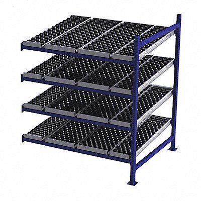 Gravity Flow Rack 1 000 lb Load Capacity per Shelf Tilted Shelf Angle 14 ga Shelf Gauge Add-On Shelving Configuration Number of Shelves 4 Decking Finish Powder Coated Decking Material Rubber Skate Wheel Track Decking Style Depth per Side 48 in Powder Coated Steel Blue Overall Depth 48 in Overall Height 72 in Overall Width 60 in 12 ga Post Gauge 4 000 lb Whole Unit Load Capacity Assembled Unassembled Labels Post Caps Touch Up Marker Bolt-Together