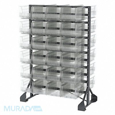 Bin Rail Floor Rack Clear Bin Color Bin HxWxD (48) 7 in x 8 1/4 in x 14 3/4 in Hang and Stack Polymer Number of Bins 48 Overall Depth 30 in Overall Height 54 in Overall Width 36 in Rack Color Gray Rail Finish Powder Coated Rail Material Steel ESD Conductive No Frame Material Steel 48 Bins Number of Usable Sides 2 Load Capacity per Rail 41 lb Whole Unit Load Capacity 500 lb