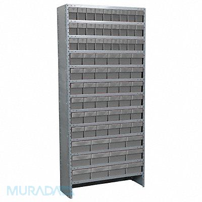 Enclosed Bin Shelving Bin Style Drawer Bin Material Polymer (12) 4 5/8 in x 8 3/8 in x 11 5/8 in (30) 4 5/8 in x 3 3/4 in x 11 5/8 in (36) 4 5/8 in x 5 9/16 in x 11 5/8 in Bin HxWxD Bin Height 4 5/8 in Bin Front Type Closed Bin Depth 11 5/8 in Bin Color Gray Frame Material Steel Frame Color Gray Powder Coated Includes Bins Yes Bin Width 3 3/4 in 5 9/16 in 8 3/8 in Includes 31142 31162 31182 Load Capacity per Shelf 500 lb Mobility Stationary Number of Bins 78