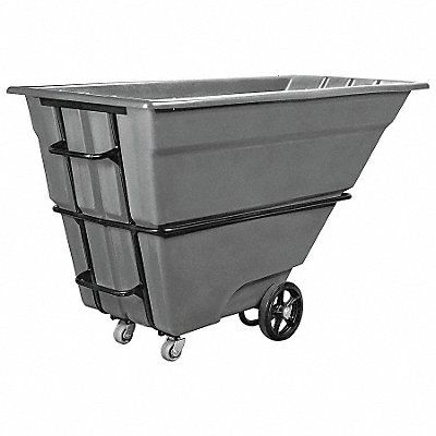 Plastic Tilt Truck Cubic Foot Capacity 40.5 cu ft Load Capacity 2 000 lb Overall Length 85 in Overall Width 38 in Overall LxWxH 85 in x 38 in x 50 in Overall Height 50 in Container Material Polyethylene Color Gray Handle Type Raised Mobility Option Manual Caster/Wheel Configuration (1) Swivel (2) Axle-Mounted Caster/Wheel Mounting Location 3-Wheel Caster Wheel Type Standard Caster Wheel/Tread Material Rubber Caster Wheel Dia 4 in Caster Brake Type No Brake Included