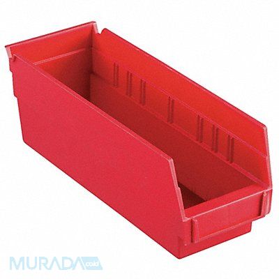 F8466 Shelf Bin Color Red Includes Dividers No Includes Label Holder Yes Material Plastic Overall Height 4 in Overall Length 11 5/8 in Overall Width 4 1/8 in Weight Capacity 10 lb Mobility Stationary Nestable Yes Number of Divider Slots 7 Number of Long Divider Slots 0 Number of Short Divider Slots 7 Number of Dividers 0 Caster Wheel Diameter Not Applicable Divider Adjustment Increments Not Applicable Electrostatic Discharge No Hangable Yes Hopper Height 4 in