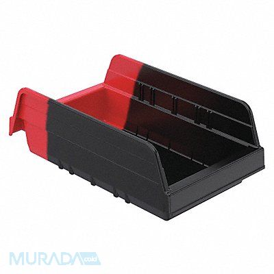 H8695 Shelf Bin Color Black/Red Includes Dividers No Includes Label Holder Yes Material Plastic Overall Height 4 in Overall Length 11 5/8 in Overall Width 6 5/8 in Weight Capacity 15 lb Mobility Stationary Nestable Yes Number of Divider Slots 5 Number of Long Divider Slots 0 Number of Short Divider Slots 5 Number of Dividers 0 Caster Wheel Diameter Not Applicable Divider Adjustment Increments Not Applicable Electrostatic Discharge No Hopper Height 3 7/8 in Hopper Style Single-Sided