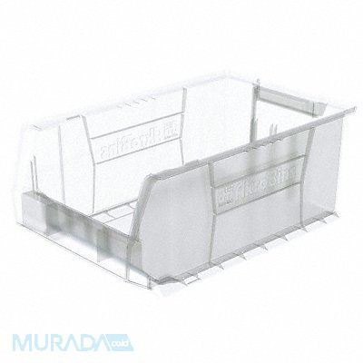 Super Size Bin Color Clear Includes Dividers No Includes Label Holder Yes Material Plastic Overall Height 8 in Overall Length 20 in Overall Width 12 3/8 in Stackable Yes Weight Capacity 200 lb Mobility Stationary Number of Divider Slots 3 Number of Long Divider Slots 3 Number of Short Divider Slots 0 Number of Dividers 0 Caster Wheel Diameter Not Applicable Divider Adjustment Increments Not Applicable Electrostatic Discharge No Hangable No Hopper Height 7 3/8 in