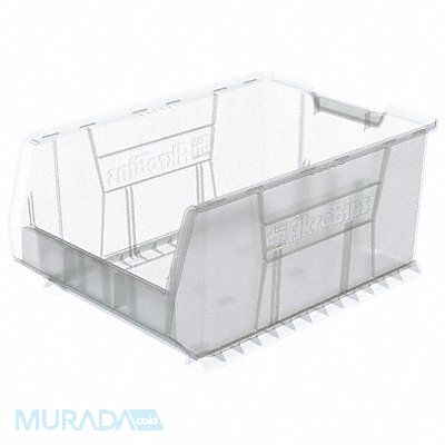 Super Size Bin Color Clear Includes Dividers No Includes Label Holder Yes Material Plastic Overall Height 11 in Overall Length 23 7/8 in Overall Width 16 1/2 in Stackable Yes Weight Capacity 300 lb Mobility Stationary Number of Divider Slots 5 Number of Long Divider Slots 3 Number of Short Divider Slots 2 Number of Dividers 0 Caster Wheel Diameter Not Applicable Divider Adjustment Increments Not Applicable Electrostatic Discharge No Hangable No Hopper Height 10 1/8 in