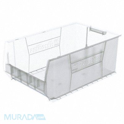 Super Size Bin Color Clear Includes Dividers No Includes Label Holder Yes Material Plastic Overall Height 12 in Overall Length 29 1/4 in Overall Width 18 3/8 in Stackable Yes Weight Capacity 300 lb Mobility Stationary Number of Divider Slots 3 Number of Long Divider Slots 3 Number of Short Divider Slots 0 Number of Dividers 0 Caster Wheel Diameter Not Applicable Divider Adjustment Increments Not Applicable Electrostatic Discharge No Hangable No Hopper Height 11 3/8 in