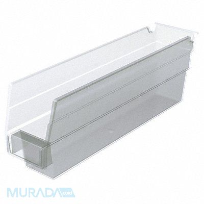 Shelf Bin Color Clear Includes Label Holder Yes Material Plastic Overall Height 4 in Overall Length 11 5/8 in Overall Width 2 3/4 in Weight Capacity 7 lb Mobility Stationary Nestable Yes Number of Divider Slots 0 Number of Long Divider Slots 0 Number of Short Divider Slots 0 Number of Dividers Not Applicable Caster Wheel Diameter Not Applicable Divider Adjustment Increments Not Applicable Electrostatic Discharge No Hangable Yes Hopper Height 4 in Hopper Style Single-Sided
