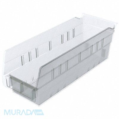 Shelf Bin Color Clear Includes Dividers No Includes Label Holder Yes Material Plastic Overall Height 4 in Overall Length 11 5/8 in Overall Width 4 1/8 in Weight Capacity 10 lb Mobility Stationary Nestable Yes Number of Divider Slots 7 Number of Long Divider Slots 0 Number of Short Divider Slots 7 Number of Dividers 0 Caster Wheel Diameter Not Applicable Divider Adjustment Increments Not Applicable Electrostatic Discharge No Hangable Yes Hopper Height 4 in
