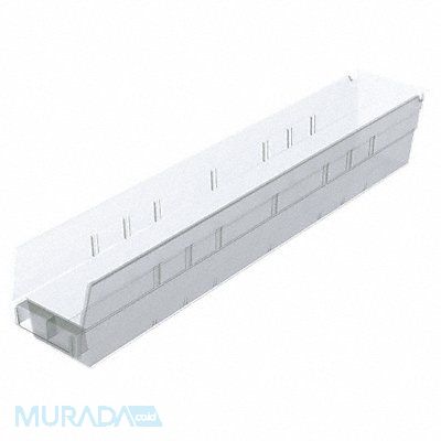 Shelf Bin Color Clear Includes Dividers No Includes Label Holder Yes Material Plastic Overall Height 4 in Overall Length 23 5/8 in Overall Width 4 1/8 in Weight Capacity 20 lb Mobility Stationary Nestable Yes Number of Divider Slots 7 Number of Long Divider Slots 0 Number of Short Divider Slots 7 Number of Dividers 0 Caster Wheel Diameter Not Applicable Divider Adjustment Increments Not Applicable Electrostatic Discharge No Hangable Yes Hopper Height 4 in
