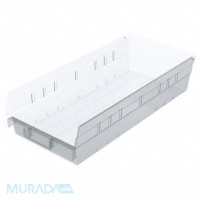 Shelf Bin Color Clear Includes Dividers No Includes Label Holder Yes Material Plastic Overall Height 4 in Overall Length 17 7/8 in Overall Width 8 3/8 in Weight Capacity 20 lb Mobility Stationary Nestable Yes Number of Divider Slots 7 Number of Long Divider Slots 0 Number of Short Divider Slots 7 Number of Dividers 0 Caster Wheel Diameter Not Applicable Divider Adjustment Increments Not Applicable Electrostatic Discharge No Hangable Yes Hopper Height 4 in