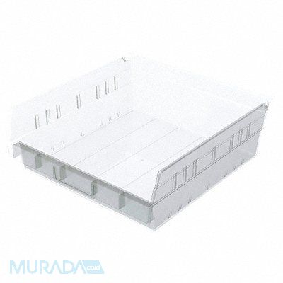 Shelf Bin Color Clear Includes Dividers No Includes Label Holder Yes Material Plastic Overall Height 4 in Overall Length 11 5/8 in Overall Width 11 1/8 in Weight Capacity 20 lb Mobility Stationary Nestable Yes Number of Divider Slots 7 Number of Long Divider Slots 0 Number of Short Divider Slots 7 Number of Dividers 0 Caster Wheel Diameter Not Applicable Divider Adjustment Increments Not Applicable Electrostatic Discharge No Hangable Yes Hopper Height 4 in