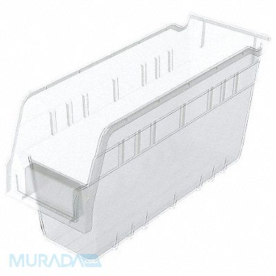 Shelf Bin Color Clear Includes Dividers No Includes Label Holder Yes Material Plastic Overall Height 6 in Overall Length 11 5/8 in Overall Width 4 1/8 in Weight Capacity 20 lb Mobility Stationary Nestable Yes Number of Divider Slots 7 Number of Long Divider Slots 0 Number of Short Divider Slots 7 Number of Dividers 0 Caster Wheel Diameter Not Applicable Divider Adjustment Increments Not Applicable Electrostatic Discharge No Hangable Yes Hopper Height 6 in