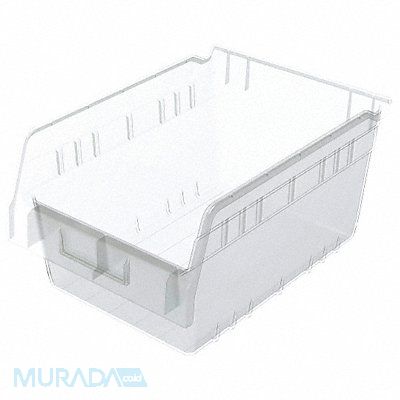Shelf Bin Color Clear Includes Dividers No Includes Label Holder Yes Material Plastic Overall Height 6 in Overall Length 11 5/8 in Overall Width 8 3/8 in Weight Capacity 35 lb Mobility Stationary Nestable Yes Number of Divider Slots 7 Number of Long Divider Slots 0 Number of Short Divider Slots 7 Number of Dividers 0 Caster Wheel Diameter Not Applicable Divider Adjustment Increments Not Applicable Electrostatic Discharge No Hangable Yes Hopper Height 6 in