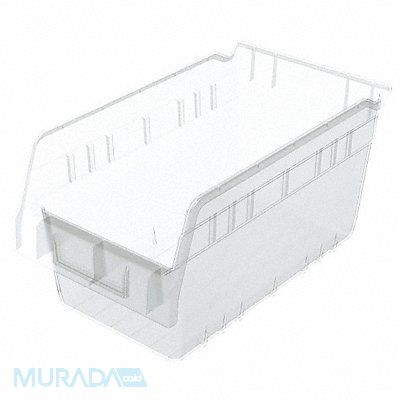 Shelf Bin Color Clear Includes Dividers No Includes Label Holder Yes Material Plastic Overall Height 6 in Overall Length 11 5/8 in Overall Width 6 5/8 in Weight Capacity 20 lb Mobility Stationary Nestable Yes Number of Divider Slots 7 Number of Long Divider Slots 0 Number of Short Divider Slots 7 Number of Dividers 0 Caster Wheel Diameter Not Applicable Divider Adjustment Increments Not Applicable Electrostatic Discharge No Hangable Yes Hopper Height 6 in