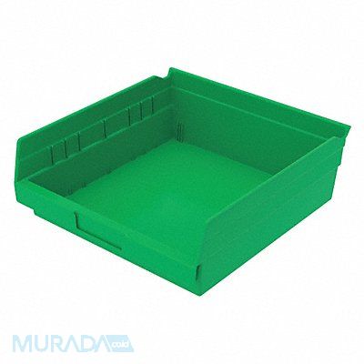 Shelf Bin Color Green Includes Dividers No Includes Label Holder Yes Material Plastic Overall Height 4 in Overall Length 11 5/8 in Overall Width 11 1/8 in Weight Capacity 20 lb Mobility Stationary Nestable Yes Number of Divider Slots 7 Number of Long Divider Slots 0 Number of Short Divider Slots 7 Number of Dividers 0 Caster Wheel Diameter Not Applicable Divider Adjustment Increments Not Applicable Electrostatic Discharge No Hangable Yes Hopper Height 4 in