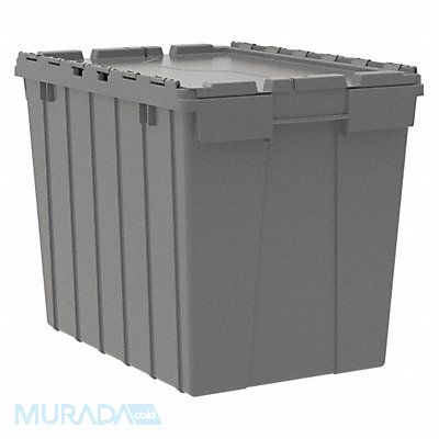 F8958 Attached Lid Container Container Wall Type Solid Fork Pockets No Includes Lid Yes Material Plastic Maximum Operating Temperature 140 Degrees F Minimum Operating Temperature -5 Degrees F Body Color Gray Lid Color Gray Nestable Yes Overall Height 17 in Overall Length 21 1/2 in Overall Width 15 1/4 in Resistant To Alkaline Solutions Corrosion Rust Water Weak Acids Stackable Yes Stacking Capacity 200 lb Volume Capacity 17 gal Weight Capacity 100 lb NSF Certified No