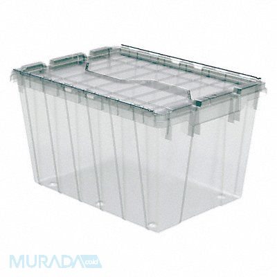 Attached Lid Container Container Wall Type Solid Fork Pockets No Includes Lid Yes Material Plastic Maximum Operating Temperature 140 Degrees F Minimum Operating Temperature -5 Degrees F Body Color Clear Lid Color Clear Nestable Yes Overall Height 12 1/2 in Overall Length 21 1/2 in Overall Width 15 1/4 in Resistant To Alkaline Solutions Corrosion Rust Water Weak Acids Stackable Yes Stacking Capacity 175 lb Volume Capacity 12 gal Weight Capacity 50 lb NSF Certified No