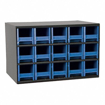 G2392 Drawer Bin Cabinet Cabinet Color Gray Cabinet Material Steel Drawer Color Blue Drawer HxWxD (15) 3 3/16 in x 10 9/16 in x 3 1/16 in Drawer Material Polystyrene ESD Conductive No Number of Dividers 30 Number of Drawers 15 Overall Depth 11 in Overall Height 11 in Overall Width 17 in Stackable Yes Cabinet Finish Powder Coated Cabinet Storage Components Drawers Drawer Depth 10 9/16 in Drawer Height 3 1/16 in Drawer Width 3 3/16 in Duty Rating Heavy Duty Frame Assembled Assembled