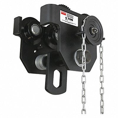 Geared Trolley Load Capacity 10 000 lb Fits Beam Height 4-51/64 in Fits Beam Flange W 4-1/2 in to 8 in Min Radius Curve 63 in Trolley Wheel Dia 3 55/64 in Wheel Material Steel Head Room To Bail 9 3/32 in Standards ANSI B30.10 / CE / AS 1418.2