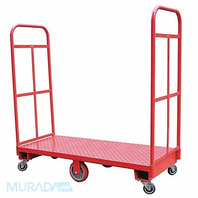Narrow Steel-Deck Platform Truck Load Capacity 2 000 lb Overall Height 60 1/4 in Overall Length 63 in Overall Width 24 in Deck Construction Solid Deck Material Steel Deck Gauge 10 ga Deck Height 10 3/4 in Deck Length 60 in Deck Width 24 in Deck Surface Smooth Frame Material Steel Frame Finish/Coating Powder Coated Handle Type (2) Tall Side Panel Type No Side Panels Number of Platforms 1 Color Red