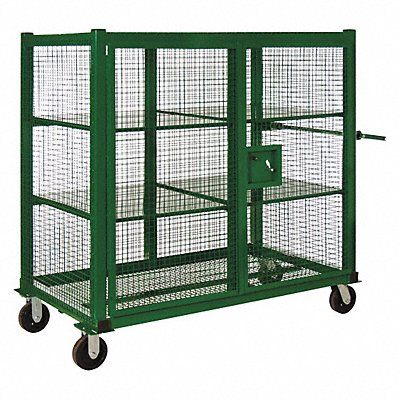 Wire Security Cart with Removable Shelves Load Capacity 1 500 lb Shelf Construction Mesh Side Panel Construction Wire Door Style Double Hinged Door Number of Shelves 4 Shelf Adjustability Removable Caster/Wheel Configuration (2) Rigid (2) Swivel with Brake Caster Wheel Dia 6 in Caster Wheel Type Standard Caster Wheel/Tread Material Nylon Caster Brake Type Total Lock Brake Locking System Lock and Key Gauge 14 ga Handle Type Flat