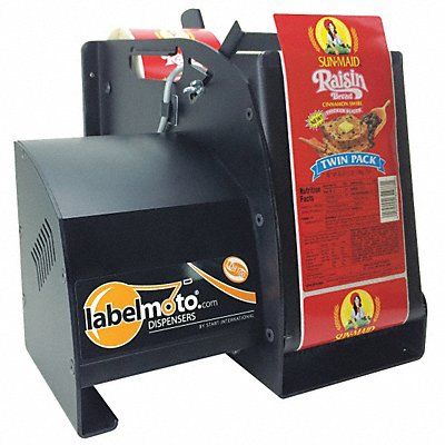 Electric Label Dispenser Label Dispenser Style Electric Overall Height 10 13/32 in Overall Length 14 13/32 in Overall Depth 11 57/64 in For Max Label Width 5 in For Max Roll Dia 12 in For Min Label Width 1/4 in Material Anodized Aluminum Voltage 110/115V AC 2.5A 60Hz Feed Speed 7.8 in/sec Includes 3 in Core Holder Lock Rod Material Guide Power Cord