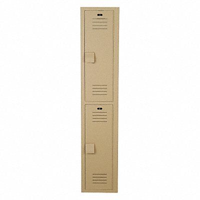 Wardrobe Locker Audit Trail Storage None Frame Assembled Assembled Number of Tiers 2 Number of Units Wide 1 Door Type Louvered Locker Color Tan Lock Type Padlock Hasp Overall Depth 15 in Overall Height 72 in Overall Width 12 in Handle Type Projecting Lift Includes Number Plate Locker Finish Matte Locker Material High Density Polyethylene Number of Lockers 2 Opening Depth 14 1/8 in Opening Height 34 1/2 in Opening Width 8 1/4 in