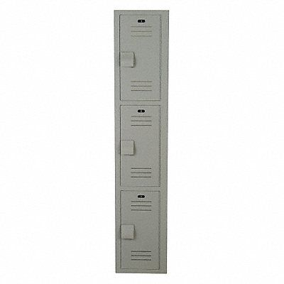 Wardrobe Locker Audit Trail Storage None Frame Assembled Assembled Number of Tiers 3 Number of Units Wide 1 Door Type Louvered Locker Color Gray Lock Type Padlock Hasp Overall Depth 18 in Overall Height 60 in Overall Width 12 in Handle Type Projecting Lift Includes Number Plate Locker Finish Matte Locker Material High Density Polyethylene Number of Lockers 3 Opening Depth 17 1/8 in Opening Height 18 5/8 in Opening Width 8 1/4 in