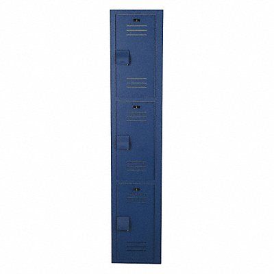 Wardrobe Locker Audit Trail Storage None Frame Assembled Assembled Number of Tiers 3 Number of Units Wide 1 Door Type Louvered Locker Color Blue Lock Type Padlock Hasp Overall Depth 18 in Overall Height 72 in Overall Width 12 in Handle Type Projecting Lift Includes Number Plate Locker Finish Matte Locker Material High Density Polyethylene Number of Lockers 3 Opening Depth 17 1/8 in Opening Height 22 5/8 in Opening Width 8 1/4 in