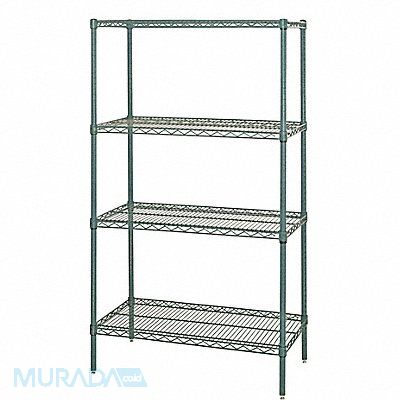 Wire Shelving Green Color Assembled Unassembled Epoxy Coated Load Capacity per Shelf 800 lb Material Steel Overall Depth 18 in Overall Height 63 in Overall Width 48 in Dry Wet Recommended Environments Standards NSF Approved 3 200 lb Shelf Configuration Starter Number of Shelves 4