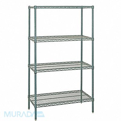 Wire Shelving Green Color Assembled Unassembled Epoxy Coated Load Capacity per Shelf 800 lb Material Steel Overall Depth 18 in Overall Height 74 in Overall Width 48 in Dry Wet Recommended Environments Standards NSF Approved 3 200 lb Shelf Configuration Starter Number of Shelves 4