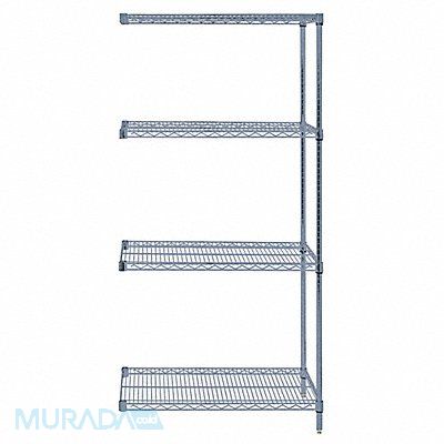 Wire Shelving Add-On Kit Gray Color Epoxy Coated Includes (2) Posts (8) S Hooks Includes Mounting Hardware No Load Capacity per Shelf 600 lb Material Steel Mounting Hardware Required No Overall Depth 24 in Overall Height 74 in Overall Width 60 in Dry Wet Recommended Environments 2 400 lb Shelf Configuration Add-On Number of Shelves 4