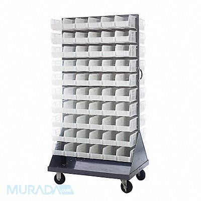 Mobile Louvered Floor Rack Bin Color Clear Bin Depth 10 7/8 in Bin Height 5 in Bin Style Hang and Stack Bin Width 5 1/2 in Number of Bins 120 Caster Wheel/Configuration (2) Rigid (2) Swivel Caster Wheel Diameter 5 in Steel Powder Coated Gray Number of Sides 2 Overall Depth 24 in Overall Height 72 in Overall Width 36 in Whole Unit Load Capacity 1 200 lb Includes Pull Handle Mobile Louvered Floor Rack