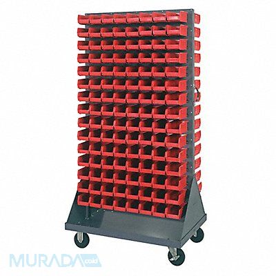 Mobile Louvered Floor Rack Bin Color Red Bin Depth 7 3/8 in Bin Height 3 in Bin Style Hang and Stack Bin Width 4 1/8 in Number of Bins 240 For Maximum Number of Bins 240 Caster Wheel/Configuration (2) Rigid (2) Swivel Caster Wheel Diameter 5 in Caster Wheel/Tread Material Hard Rubber Steel Powder Coated Gray Number of Sides 2 Overall Depth 24 in Overall Height 72 in Overall Width 36 in Whole Unit Load Capacity 1 200 lb Frame Configuration Vertical