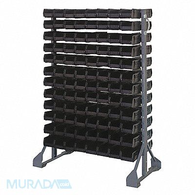 E1535 Bin Rail Floor Rack Black Bin Color Bin HxWxD (192) 3 in x 4 1/8 in x 7 3/8 in Hang and Stack Polypropylene Number of Bins 192 Overall Depth 20 in Overall Height 54 in Overall Width 36 in Rack Color Gray Rail Finish Powder Coated Rail Material Steel Number of Rails 12 ESD Conductive No Frame Material Steel (192) Mfr No QUS220 Number of Usable Sides 2 Load Capacity per Rail 133 lb Whole Unit Load Capacity 1 600 lb