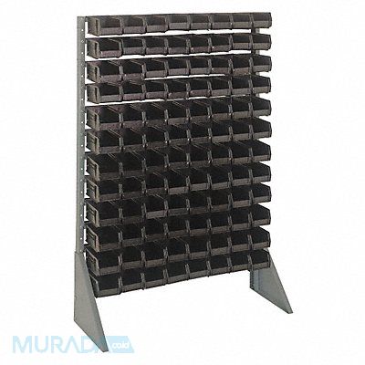 F1608 Bin Rail Floor Rack Black Bin Color Bin HxWxD (96) 3 in x 4 1/8 in x 5 3/8 in Hang and Stack Polypropylene Number of Bins 96 Overall Depth 36 in Overall Height 54 in Overall Width 15 in Rack Color Gray Rail Finish Powder Coated Rail Material Steel ESD Conductive No Frame Material Steel Number of Usable Sides 1 Load Capacity per Rail 50 lb Whole Unit Load Capacity 600 lb