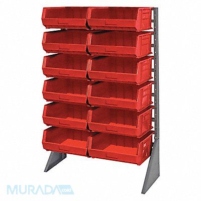 F1614 Bin Rail Floor Rack Red Bin Color Bin HxWxD (12) 7 in x 16-1/2 in x 14-3/4 in Hang and Stack Polypropylene Number of Bins 12 Overall Depth 36 in Overall Height 54 in Overall Width 15 in Rack Color Gray Rail Finish Powder Coated Rail Material Steel ESD Conductive No Frame Material Steel Number of Usable Sides 1 Load Capacity per Rail 50 lb Whole Unit Load Capacity 600 lb