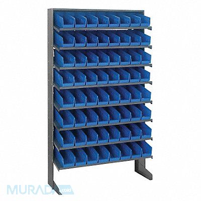 G7016 Pick Rack Bin Style Shelf Bin Material Polypropylene (64) 6 in x 4 1/8 in x 11 5/8 in Bin HxWxD Bin Height 6 in Bin Front Type Open Bin Depth 11 5/8 in Bin Color Blue Frame Material Steel Frame Color Gray Powder Coated Includes Bins Yes Bin Width 4 1/8 in Load Capacity per Shelf 50 lb Number of Bins 64 Number of Shelves 8 Number of Usable Sides 1 Overall Depth 12 in Overall Height 64 in Overall Width 36 in Powder Coated Shelf Finish Steel Shelf Material No