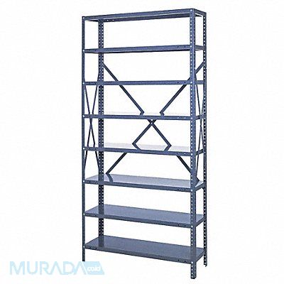 Metal Shelving Bin Front Type Open Frame Material Steel Frame Color Gray Powder Coated Load Capacity per Shelf 40 lb Mobility Stationary Number of Shelves 8 Number of Usable Sides 1 Overall Depth 18 in Overall Height 75 in Overall Width 42 in Powder Coated Shelf Finish Steel Shelf Material No Light-Duty Duty Rating Assembled Unassembled