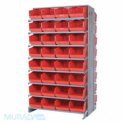 G7010 Pick Rack Bin Style Shelf Bin Material Polypropylene (64) 6 in x 8 3/8 in x 11 5/8 in Bin HxWxD Bin Height 6 in Bin Front Type Open Bin Depth 11 5/8 in Bin Color Red Frame Material Steel Frame Color Gray Powder Coated Includes Bins Yes Bin Width 8 3/8 in Includes QSB207RD Load Capacity per Shelf 50 lb Number of Bins 64 Number of Shelves 16 Number of Usable Sides 2 Overall Depth 24 in Overall Height 64 in Overall Width 36 in Powder Coated Shelf Finish Steel Shelf Material